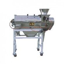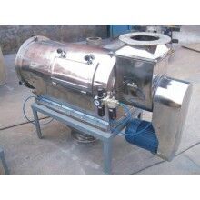 本設(shè)備篩網(wǎng)為圓筒狀,置于機體內(nèi),物料通過螺旋輸送系統(tǒng)后,和氣流混合,霧化進入網(wǎng)桶內(nèi);通過網(wǎng)桶內(nèi)風(fēng)輪葉片使物料同時受離心力和旋風(fēng)推進力,從而迫使物料噴射過網(wǎng),由細料排出口排出,不能過網(wǎng)的物料沿網(wǎng)桶壁從粗料排出口排出。