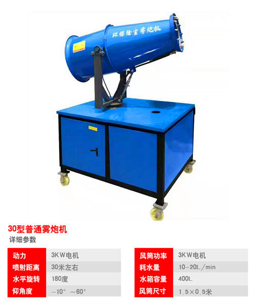 3、風機試運行:當發(fā)電機組一切運轉正常后,將電控箱上的電源開關撥至ON位置,除塵霧炮機,在電控箱上或遙控器上電動“風機開”按鈕,待風機運轉正常后,扭動電控箱上的相壓檢測扭,檢查各相線電壓是否均衡,如不服衡,應檢查