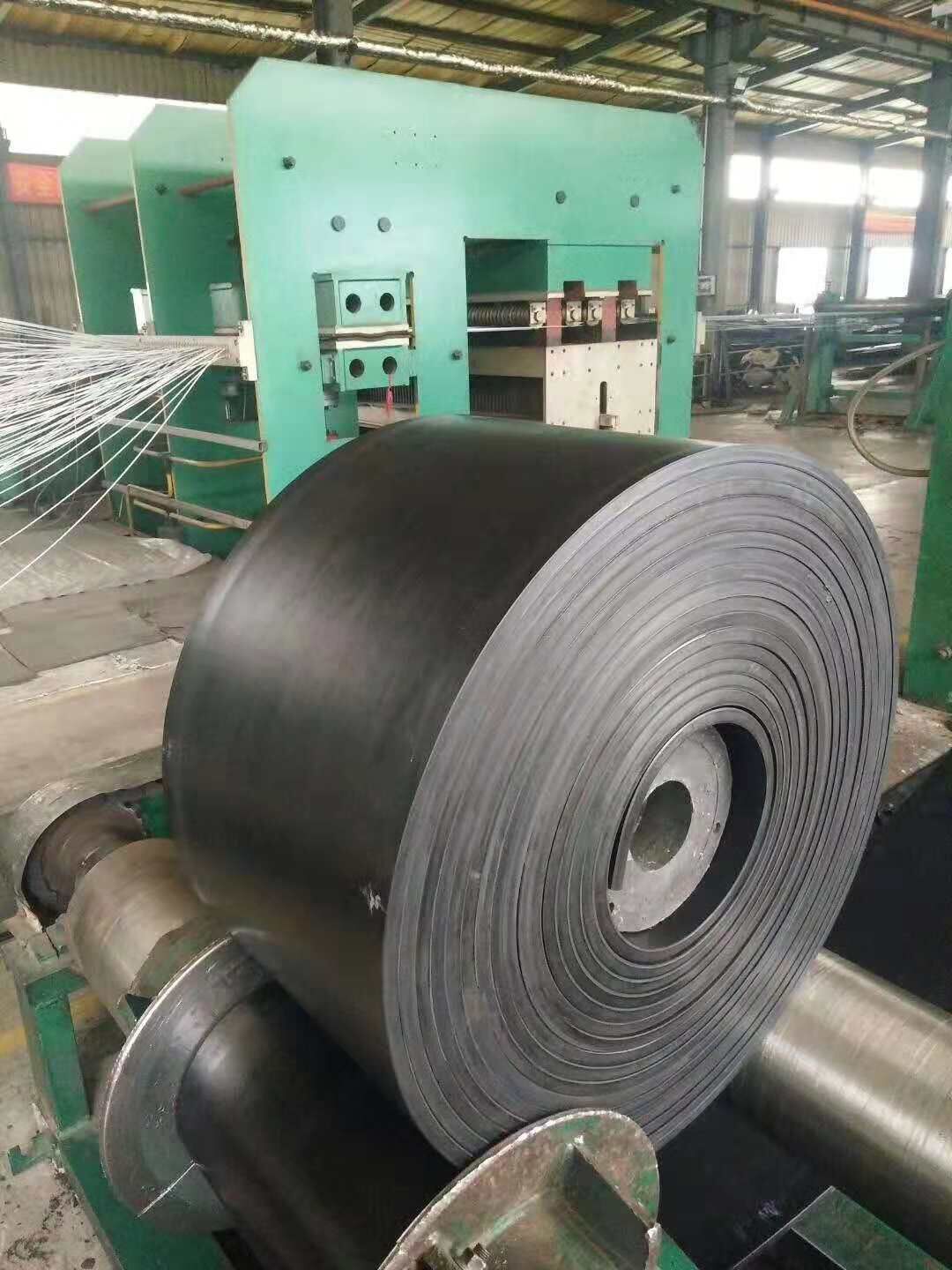 防撕裂鋼絲繩芯橡膠輸送帶該輸送帶在鋼絲繩芯上面(或上下)設置了橫向均勻排列的高延伸鋼絲繩或高強力高延伸化纖線繩作為抗撕裂層,抗撕裂層垂直于輸送帶運行方向。當輸送帶輸送硬質尖銳物料時,抗撕裂層可阻擋尖銳硬物刺穿,一旦刺穿后還可產(chǎn)生足夠抵抗尖銳硬物撕裂膠帶的阻力,從而有效防止輸送帶撕裂現(xiàn)象發(fā)生.