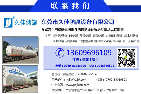 稀硫酸電廠儲液罐 pe儲罐材質(zhì) 管口一體成型 海南儲罐生產(chǎn)廠,東莞市久佳防腐設(shè)備有限公司專業(yè)生產(chǎn)久塑牌(1-125m3)立/臥式鋼襯塑(PE/PO)/碳鋼/不銹鋼儲罐、(5-50m3)管口一體成型PE儲罐、鋼襯塑攪拌罐/反應罐/過濾罐/中和罐、離子交換柱及其它化工而腐蝕非標準設(shè)備,并可根據(jù)客戶要求制作;來圖來料加工。已廣泛應用于醫(yī)藥、化工、化肥、石油、冶金、印染、電力等眾多領(lǐng)域,本公司位于珠三角中心幾何地帶東莞市,我們有著一流的技術(shù)人員、先進的設(shè)備,集設(shè)計、制作、檢測、銷售服務(wù)為一體。