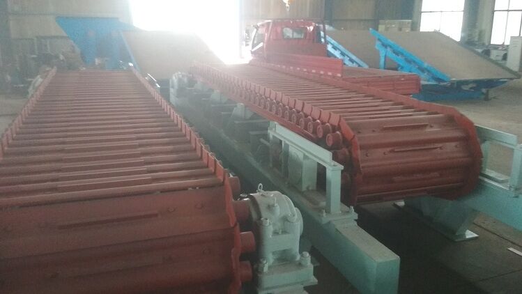 負(fù)荷鏈板材料選用優(yōu)質(zhì)合金鋼板沖壓而成。給料板式給料機(jī)每塊負(fù)荷鏈板上焊有折彎角鐵,既能滿足大傾角向上運(yùn)送物料,又提高負(fù)荷鏈板的強(qiáng)度。在鏈板寬度較寬的情況下增加輔助支撐,該項(xiàng)結(jié)構(gòu)不但增加了鏈板的強(qiáng)度,而且使運(yùn)輸過程更加平穩(wěn)可靠。拉料板式給料機(jī)為了增加鏈板表面的摩擦,防止物料打滑,在負(fù)荷鏈板上增加了一定數(shù)量的耙齒,對(duì)防止搭橋有一定的緩沖作用,保證了給料的均勻性。
