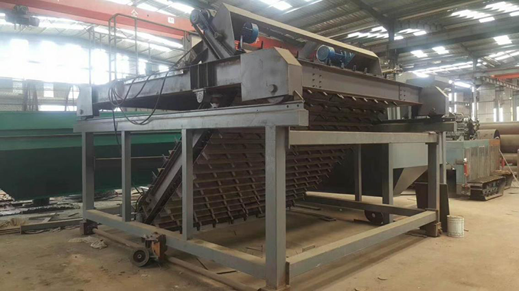 由操作工按下輸送按鈕啟動(dòng)鏈板輸送機(jī)將料袋輸送出包裝位置,待叉車來把托盤運(yùn)走。