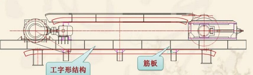 是由鋼板焊接而成的工字形結(jié)構,在上下翼緣板之間焊有若干筋板,兩個工字形主梁由若干槽鋼、工字鋼組焊為一整體,其結(jié)構堅固、穩(wěn)定。