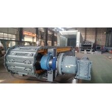 該裝置為直交軸支點浮動式,主軸套裝在行星減慢速器的輸出軸內(nèi),通過瑣緊盤將兩者聯(lián)接起來,其特點是懸掛無基礎,重量輕,速比大,由于采用支點浮動式,減少了安裝誤差及支座引起的附加彎矩,提高了傳軸的使用壽命,拆裝及維修方便。