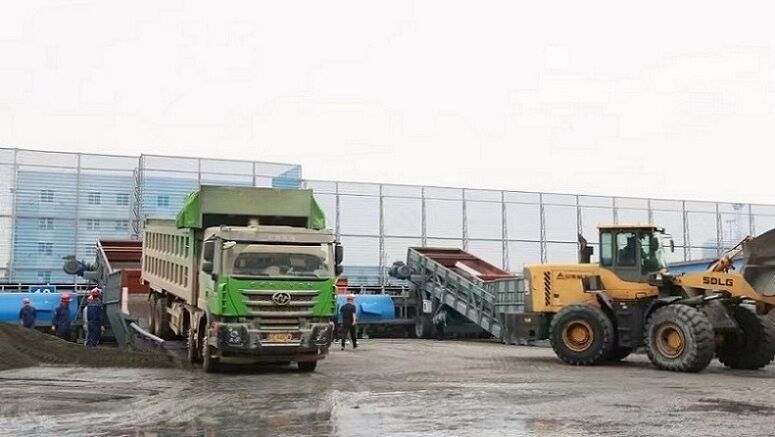 2)側(cè)傾自卸運(yùn)煤汽車直接卸煤至地表給料機(jī)的接收料斗;