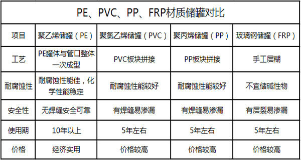 特點(diǎn):所用材質(zhì)為韓國(guó)進(jìn)口聚乙烯(PE)滾塑原料,儲(chǔ)罐一次成型,內(nèi)外光滑,無(wú)焊接縫、不滲漏、具有良好的衛(wèi)生性與抗紫外線(xiàn)能力,耐酸堿、耐腐蝕、易清洗、不易老化、抗沖擊。它可以盛裝在常溫下無(wú)機(jī)酸、堿、鹽等大部分物質(zhì)及有機(jī)物,耐熱耐凍性佳,在-5℃—+60℃均可使用。
