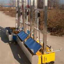 自動(dòng)粉墻機(jī)結(jié)構(gòu):主要包括由前固定立柱、前調(diào)節(jié)立柱、后固定立柱、后調(diào)節(jié)立柱、主機(jī)架、空心頂柱、壓桿等組成升降機(jī)架,由電動(dòng)機(jī)、調(diào)速器、繩輪、鏈條、鋼絲繩等構(gòu)成傳動(dòng)裝置,由沙漿托架、送灰板、抹灰板、偏心輪、蝸桿、齒輪、齒條等構(gòu)成粉墻裝置,該自動(dòng)粉墻機(jī)結(jié)構(gòu)簡單、操作方便實(shí)用,以機(jī)代人降低運(yùn)動(dòng)強(qiáng)度,省時(shí)省力、節(jié)約粉灰,適用于建筑行業(yè)粉墻作業(yè)。