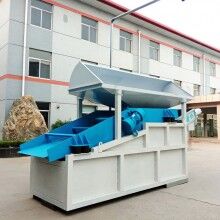 振動(dòng)式砂石分離機(jī)利用振動(dòng)電機(jī)激振作為振動(dòng)源,是物料再篩網(wǎng)上唄拋起,同時(shí)向前直線運(yùn)動(dòng),物料自罐車均勻地進(jìn)入篩分機(jī)的前段,沖洗的同時(shí),通過制定規(guī)格的篩網(wǎng)分出篩上物、篩下物,石子沿振動(dòng)篩方向流入石子儲(chǔ)料池,砂子經(jīng)篩孔漏下,由螺旋輸送機(jī)輸送到砂池。砂石用直線篩采用柔性驅(qū)動(dòng),其偏心塊所產(chǎn)生的激振力、驅(qū)動(dòng)振動(dòng)篩往復(fù)式平行復(fù)擺雙方向運(yùn)動(dòng),使混合料分離,從而達(dá)到對物料進(jìn)行篩選和分級的目的。