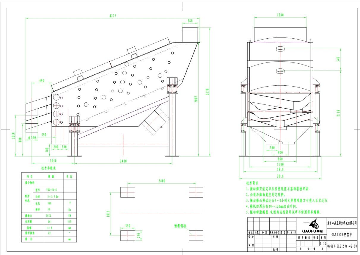 1、 GLS概率篩,計(jì)有(14)個(gè)定型規(guī)格并有振動(dòng)電機(jī)和激振器兩種振源形式,適用不同作業(yè)環(huán)境需求,選用時(shí)請(qǐng)確定電壓制式及有無(wú)防爆要求;