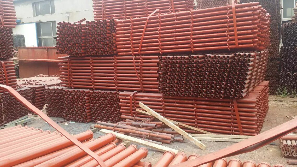 輪盤式鋼管腳手架內(nèi)架支撐是由直徑48mm鋼管,輪盤十字盤插頭焊接成立桿橫桿,橫桿插頭插入立桿的十字盤中,用錘子敲緊,輪盤是鋼板沖壓件(8-10mm厚度,0.9斤一個(gè)),插頭是精密鑄鋼件(0.5斤一個(gè)),10公分套筒直徑48mm壁厚3.0mm,再用頂托頂絲絲杠下托來調(diào)節(jié)高度做內(nèi)架支撐滿堂架的搭設(shè)等,從2009年開始,暢銷到全國34個(gè)城市和地區(qū),受到中鐵中建中水利的推薦。具有較強(qiáng)的抗壓和抗裂能力,整體承載能力強(qiáng)、剛度大、穩(wěn)定性好。這幾年,輪盤式鋼管腳手架已經(jīng)慢慢地取代了門式架和鋼管腳手架,廣泛地運(yùn)用于樓房的內(nèi)墻頂承。輪盤式鋼管腳手架是由直徑48mm鋼管,輪盤十字盤插頭焊接成立桿橫桿,橫桿插頭插入立桿的十字盤中,用錘子敲緊,再用頂托頂絲絲杠下托來調(diào)節(jié)高度做內(nèi)架支撐滿堂架的搭設(shè)等,從2009年開始,暢銷到全國34個(gè)城市和地區(qū),受到中鐵中建中水利的推薦。