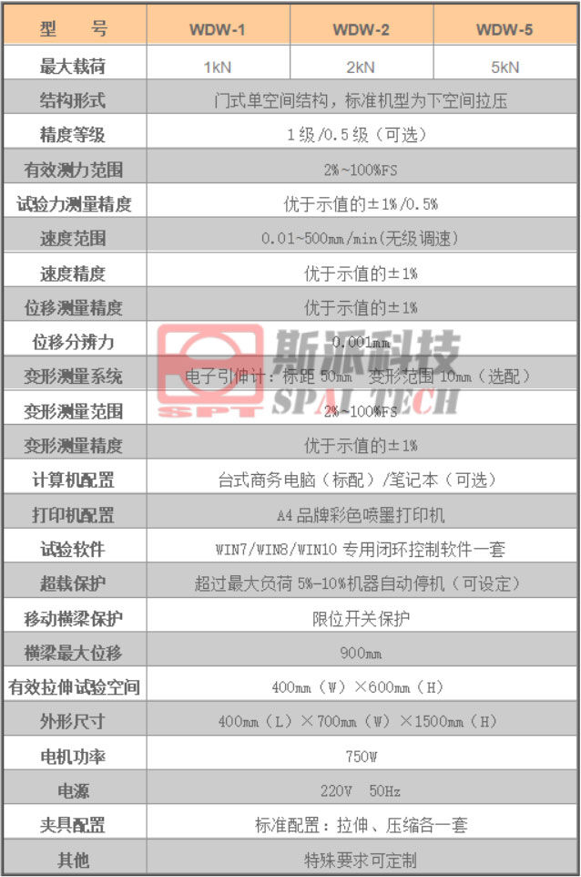 WDW系列小門式微機控制電子萬能材料試驗機采用穩(wěn)定的門式主機結(jié)構(gòu),選用日本松下(Panasonic)伺服調(diào)速系統(tǒng)、精密設(shè)計同步減速系統(tǒng)、臺灣上銀(HIWIN)/銀泰(PMI)滾珠絲杠、美國傳力(Trancell)/世銓(Celtron)力傳感器等主要部件,主要應(yīng)用于金屬、非金屬材料及制品的拉伸、壓縮、彎曲等力學(xué)性能試驗,具有結(jié)構(gòu)簡單、穩(wěn)定可靠、外形美觀等特點,深受廣大用戶的歡迎。