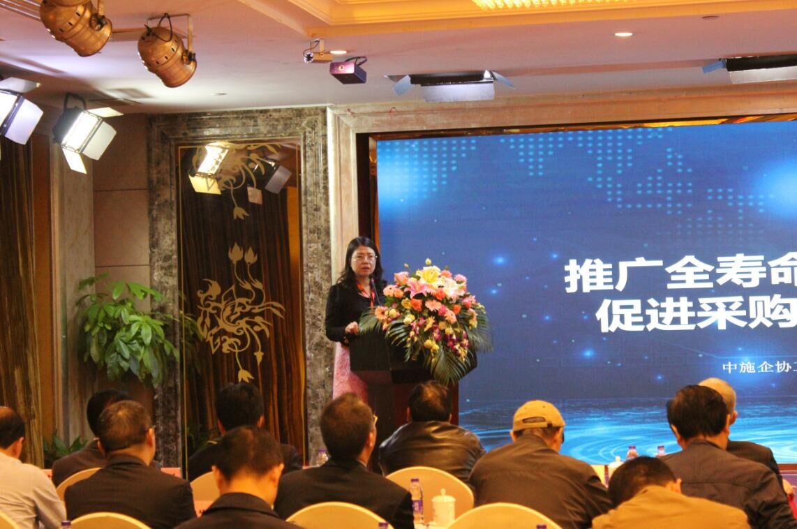 中國(guó)施工企業(yè)協(xié)會(huì)數(shù)據(jù)服務(wù)有限公司總經(jīng)理謝美珍做《推廣全壽命管理技術(shù)體系,促進(jìn)采購(gòu)供應(yīng)業(yè)務(wù)提升》報(bào)告