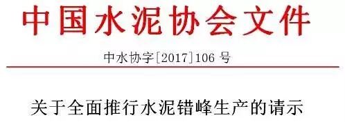 中國水泥協(xié)會于11月6日向工信部原材料司發(fā)出《關于全面推行水泥錯峰生產(chǎn)的請示》,表示錯峰生產(chǎn)作為減少污染排放量疊加的環(huán)境政策,是對所有從事水泥制造的企業(yè)(熟料生產(chǎn)企業(yè)、水泥粉磨站企業(yè))提出的要求,所有水泥企業(yè)都必須無條件的執(zhí)行錯峰生產(chǎn)政策。