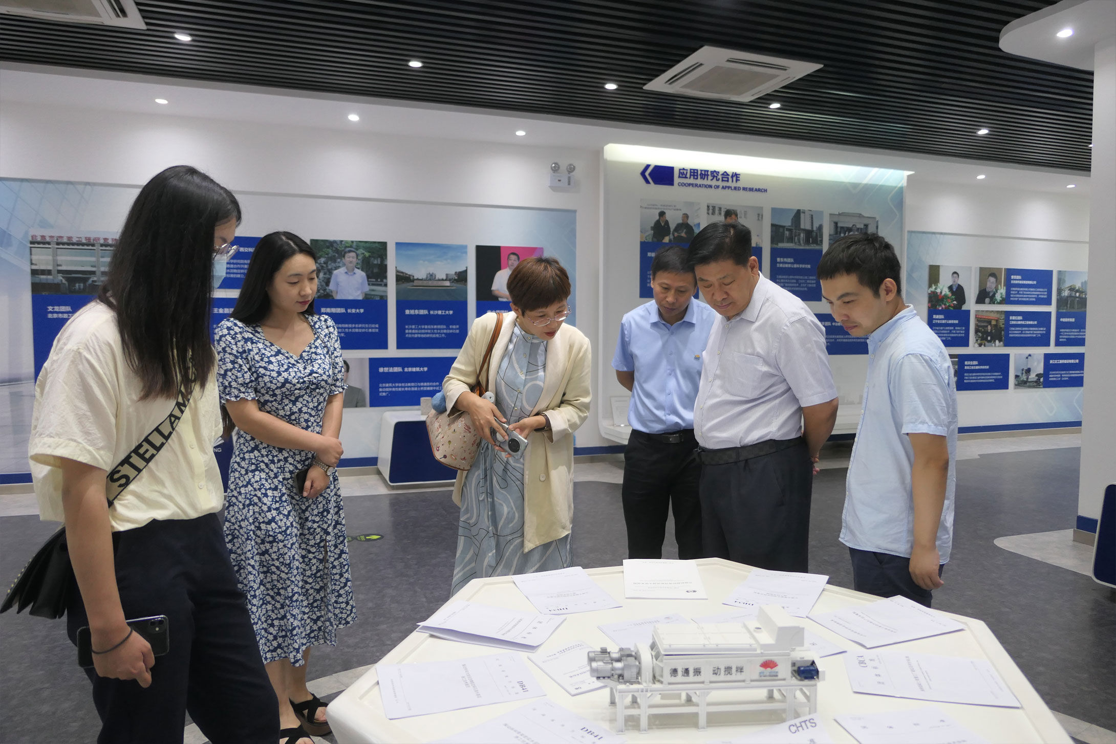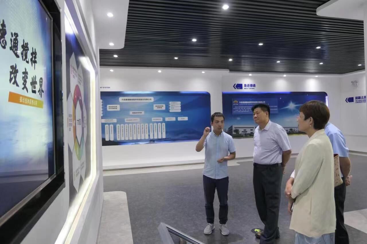 公司副總經(jīng)理孔鮮寧等陪同符忠軒會(huì)長一行參觀德通多媒體展廳,匯報(bào)振動(dòng)攪拌技術(shù)研發(fā)及應(yīng)用成果。