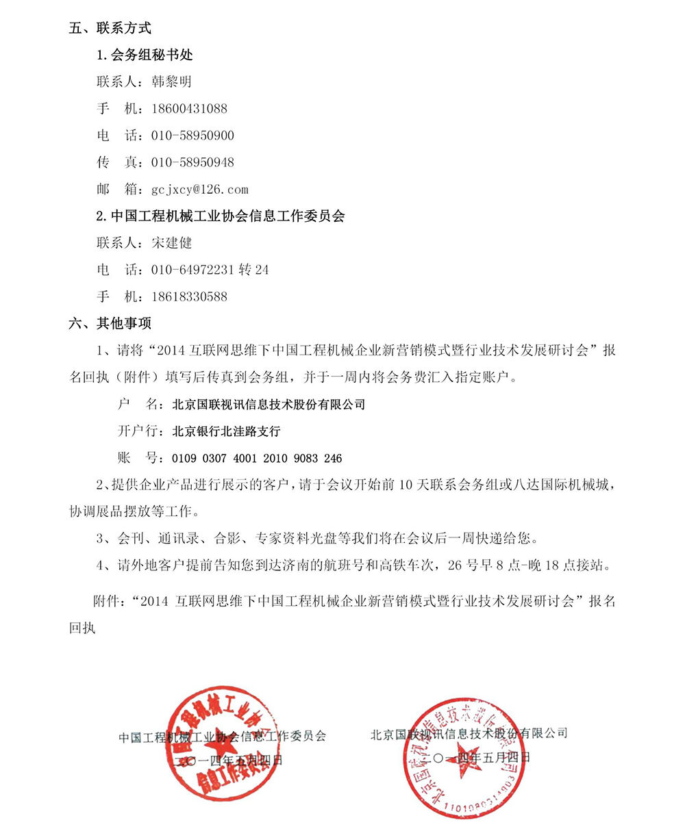 關(guān)于召開“2014互聯(lián)網(wǎng)思維下中國工程機械企業(yè)新營銷模式暨行業(yè)技術(shù)發(fā)展研討會”的通知