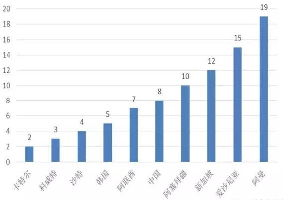 世界經(jīng)濟論壇發(fā)布的《2015-2016全球競爭力報告》,用法律和行政架構(gòu)、基礎(chǔ)設(shè)施、宏觀經(jīng)濟環(huán)境、衛(wèi)生和基礎(chǔ)教育、高等教育和培訓(xùn)、市場效率、勞動力市場效率、金融市場發(fā)展、技術(shù)、市場規(guī)模、商業(yè)環(huán)境完備性、創(chuàng)新12個指標對全球140個國家和地區(qū)的競爭力進行了評估,并對12個指標賦值加權(quán)后,得出各國的綜合競爭力排名?!耙粠б宦?/span>”沿線66個國家中,有53個國家的競爭力數(shù)據(jù)在此報告中體現(xiàn)(詳見附表2)。排名位于前70名(140個國家,70名為世界平均水平)的國家有35個,其中新加坡、日本、卡特爾、阿聯(lián)酋、馬來西亞、沙特、韓國、以色列、中國、愛沙尼亞的排名在“一帶一路”沿線國家中位于前10名,在全球的排名分別為第2名、第6名、第14名、第17名、第18名、第25名、第26名、第27、第28名、第30名;中國排名靠前的主要因是宏觀經(jīng)濟環(huán)境良好、市場規(guī)模大,其余10個指標排名均在30名以后;位于后70名的國家31個,其中阿爾巴尼亞、塞爾維亞、尼泊爾、黎巴嫩、不丹、孟加拉國、波黑、埃及、巴基斯坦、緬甸的排名在“一帶一路”沿線國家中位于后10名,在全球的排名分別為第93名、第94名、第100名、第101名、第105名、第107名、第111名、第116名、第126名、第131名。總體上看,“一帶一路”沿線國家競爭力在全球排名分布比較靠后,整體競爭力能力有待提升。